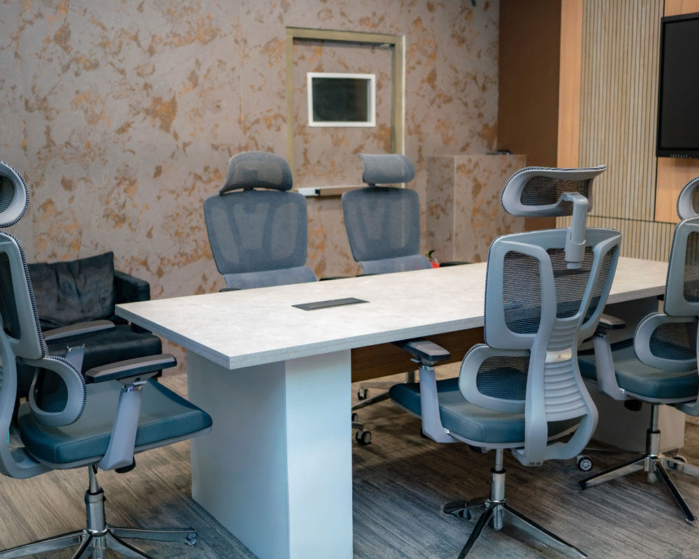 - Director & Conference Rooms:: Executive spaces, including conference tables and director rooms, were designed with a refined material palette and integrated technology to support meetings, presentations, and strategic planning.